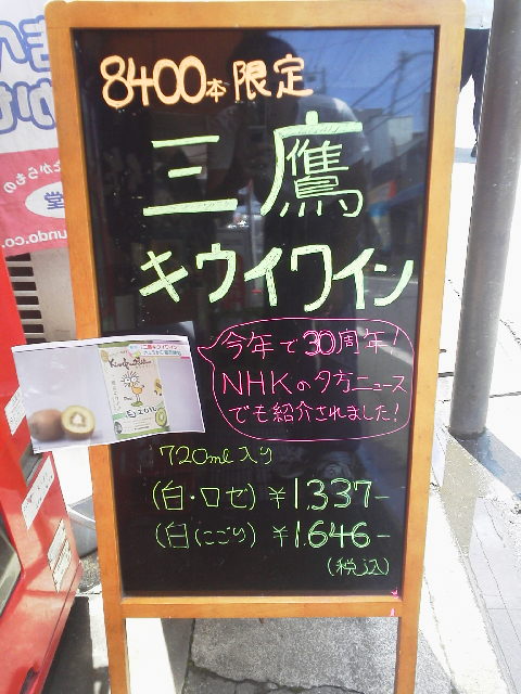 当店が所属している武蔵野酒販協同組合のブランド「三鷹キウイワイン」が発売となりました。