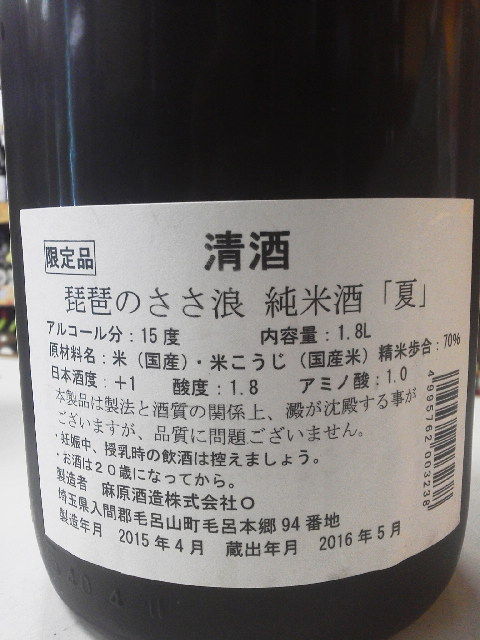 埼玉県毛呂山にある麻原酒造さんが醸した日本酒。