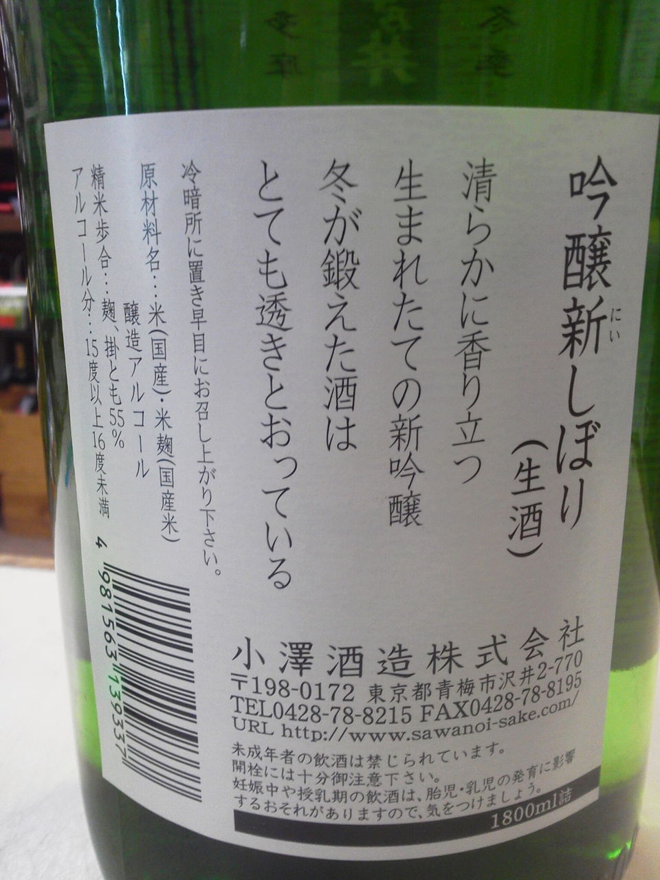 東京都青梅市にある小澤酒造さんのこの冬だけの限定品。