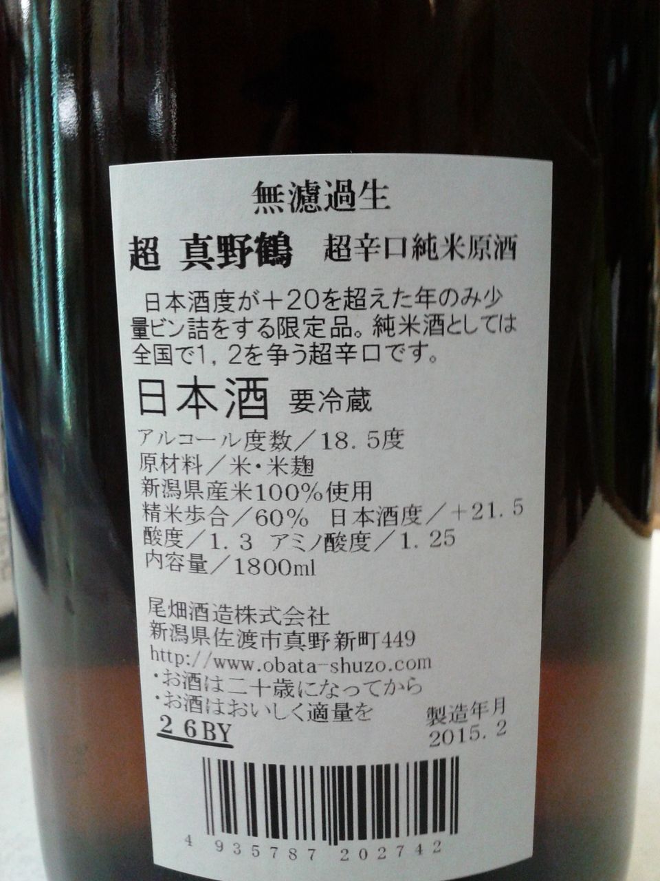 超真野鶴・超辛口純米・無濾過生原酒