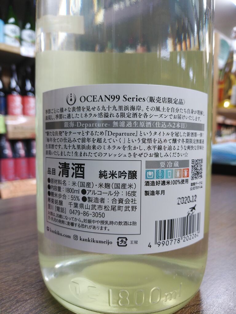 OCEAN99 銀海-Departure-純米吟醸・無濾過生原酒しぼりたてが届きました。