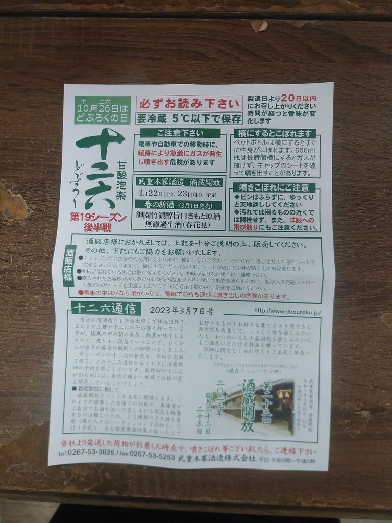 長野県佐久市にある武重本家酒造様から、秋から来春の期間だけ出荷される「十二六(どぶろく)」が今期9回目が届きました!